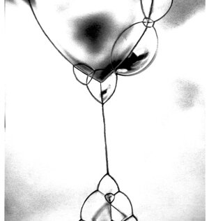 Tra "emozioni inspiegabili", un'invenzione formale al servizio di un'idea. Bolle ricondotte a forme essenziali, segni grafici stilizzati di pura eleganza: ne colgo la leggerezza, l'essenzialità, fissandone per così dire l'anima.