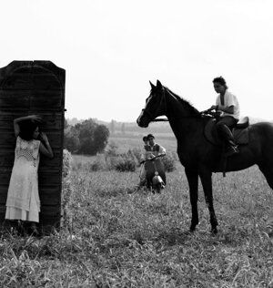 I picture places of our land where, perhaps, you would pass indifferent. I include foreign elements, characters interacting each other in a mysterious and dreamy way, blending into the landscape and trying to create a seductive atmosphere and solitary inspiring dialogues.
